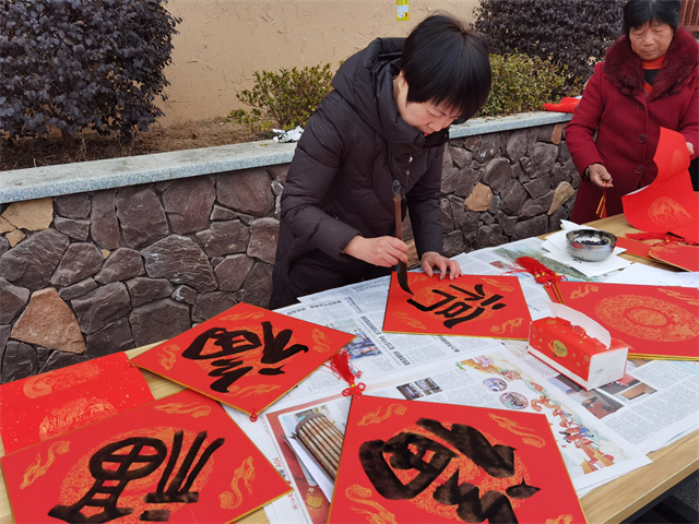 當日,幾位老師從早上9時寫到中午,一刻沒有休息,雖然冬日的寒風凌冽,但是百姓的心是火熱的,老師們看到村民如此熱情,也是越寫越開心。