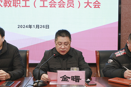 學院工會主席張傳學同志報告了工會工作,2023年,學院工會充分發揮橋梁紐帶作用,在推進學院民主管理,創新維權機制,維護教職工合法權益,深化關愛行動和工會自身建設等方面做了大量工作,促進了學院的和諧發展。2024年,工會將以創建“五有”職工文化陣地和“六有”職工之家為抓手,不斷深化“相親相愛向上一家人”教工之家品牌創建,團結全體教職工,以更加昂揚向上的狀態、更加創新實干的作風,助力學院培訓高質發展。