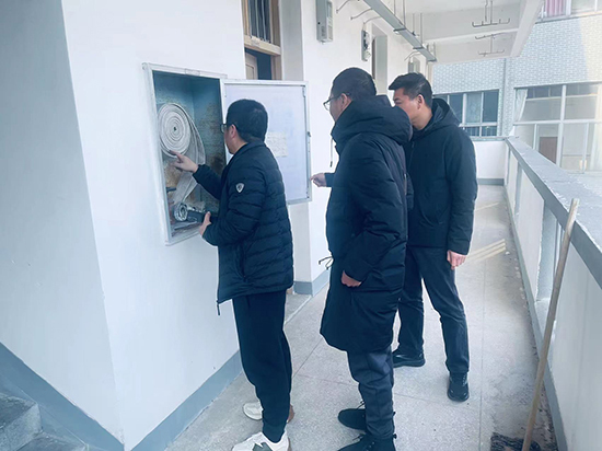 1月28日下午,諸暨市楓橋鎮中心學校安管主任郭燁、孫文明與學校的安管主任一起,對鎮域內中小學的教工宿舍開展消防安全檢查。