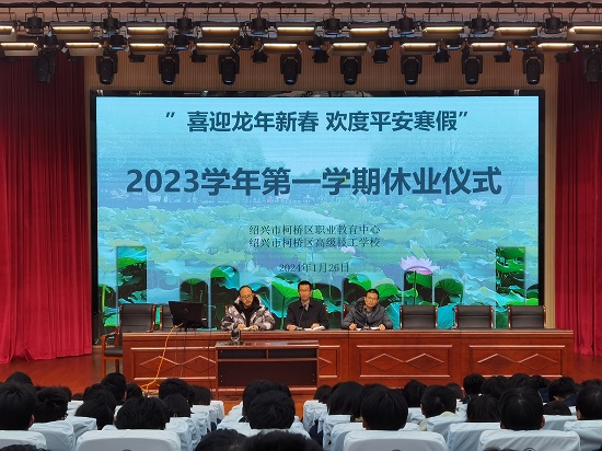 忙碌而充實的學期即將結束,大家盼望已久的寒假就要來臨,1月26日,柯橋區職業教育中心隆重舉行2023學年第一學期休業儀式,全校師生參加休業儀式。