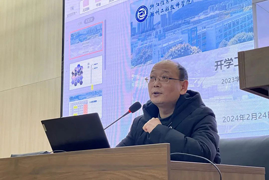 龍吟風起氣象新,春風再至展宏圖。隨著甲辰龍年的到來,新學期也如期而至。為激勵全體教職工以飽滿的熱情、昂揚的斗志投入到新學期教育教學工作中,2月24日,浙江信息工程學校·湖州工程技師學院在本校高端裝備實訓大樓報告廳舉行了新學期工作會議。