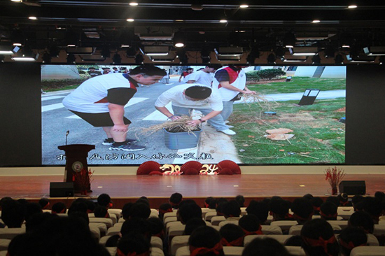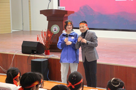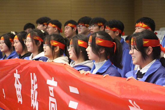 隨后,在悠揚的音樂聲中,大家共同穿越未來,暢想收到大學錄取通知書、走進大學生活的美好時刻。劉老師帶領同學們共同尋找那個最初的自己。隨后,眾多學生代表在舞臺上吶喊出自己的夢想,并以青春之名宣誓,場面熱血沸騰,激情涌動。