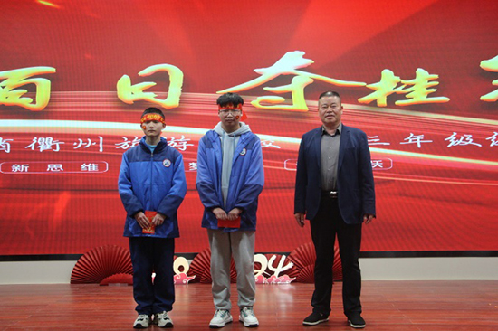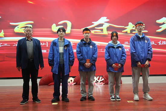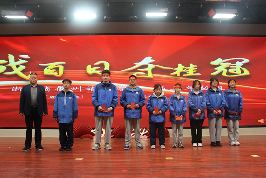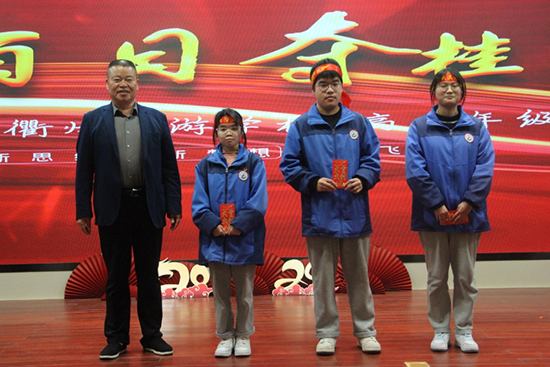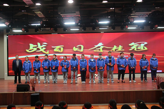 為激勵學子們在最后的百天發奮學習、勇于進取,學校對全省第一次聯合體考試成績優異的同學們進行表彰。校長助理、教務處主任江小三宣讀獲獎名單,黨支部書記、校長曾福田為獲獎同學頒獎。
