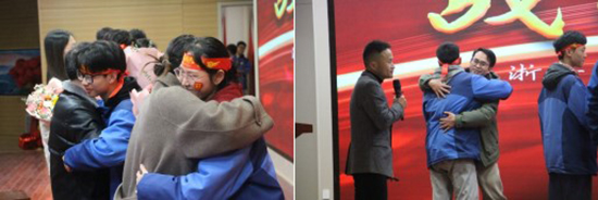 在師生互動環節,教師代表和學生代表的手緊握在一起。學生們真誠地告白:“老師,我的目標是……我一定會努力,我說到做到!”教師們則回以鼓勵的擁抱和真誠的祝福。