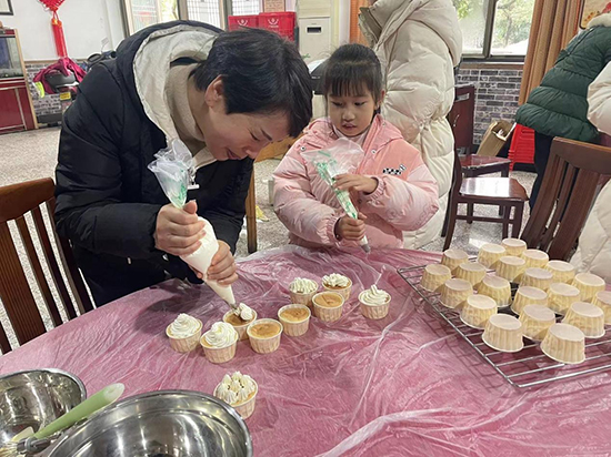 活動(dòng)中,烘焙老師向村民講解紙杯蛋糕的具體烘焙步驟,利用提前準(zhǔn)備好的牛奶、雞蛋、低筋面粉等材料進(jìn)行現(xiàn)場(chǎng)演示。參與者們?cè)诶蠋煹闹笇?dǎo)下,學(xué)習(xí)了制作蛋糕的全過程,從混合原料到烘烤,每一個(gè)步驟都讓她們充滿興奮和期待。接著,烘焙老師耐心地教大家如何裝飾紙杯蛋糕,并鼓勵(lì)大家發(fā)揮創(chuàng)意,嘗試不同的裝飾方式。隨后,大家開始動(dòng)手進(jìn)行裝飾,彩色的麥片、新鮮的水果成為了裝飾的主角,紙杯蛋糕在她們的巧手下變得五彩斑斕、美輪美奐。