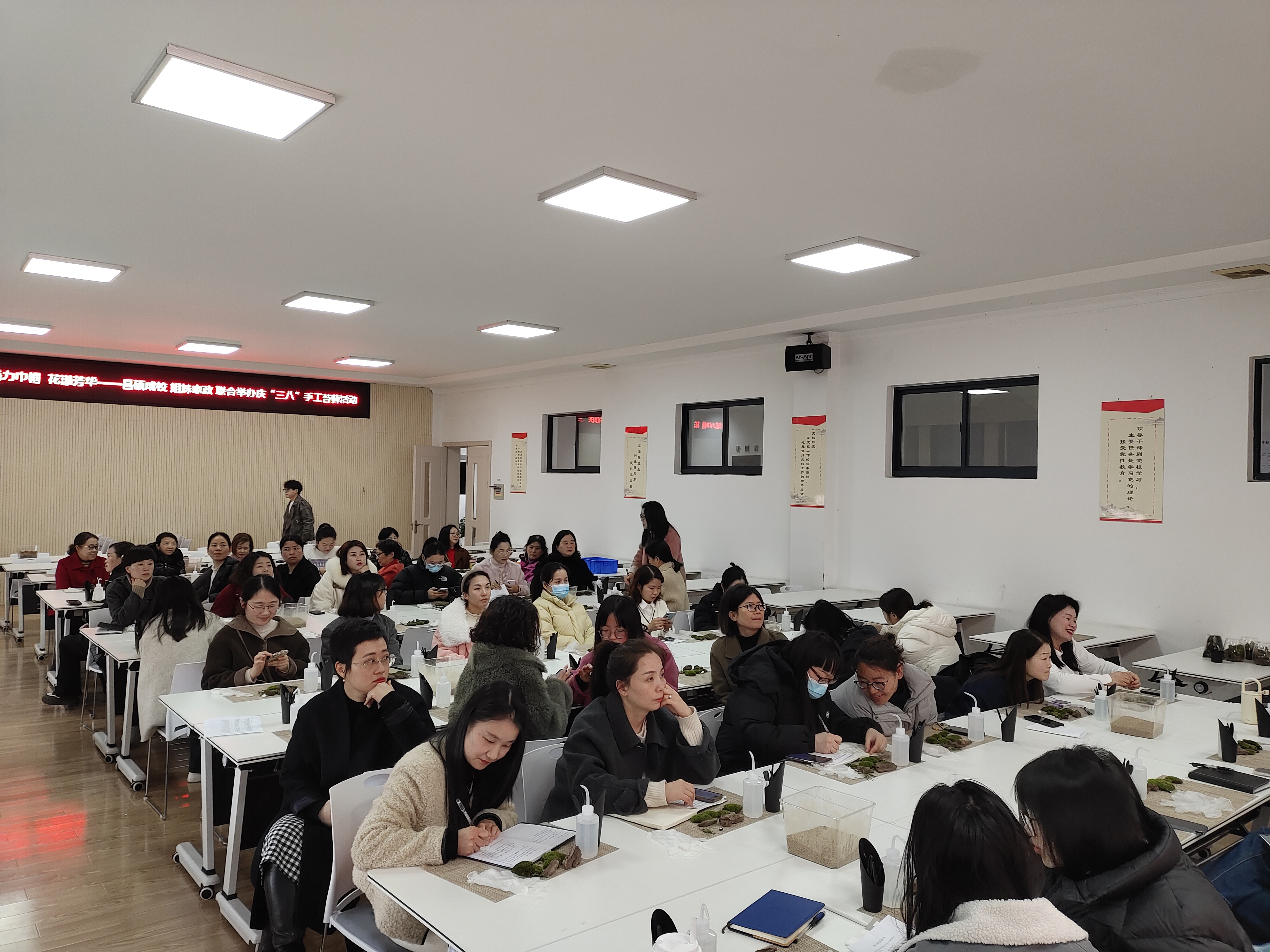 “三八”國家婦女節來臨之際,為提高轄區家政從業人員幸福指數,減輕生活、工作、家庭等各方面的壓力,3月4日下午,安吉縣社區教育學院昌碩分院(簡稱昌碩成校)聯合家政工會舉辦“魅力巾幗 花漾芳華”苔蘚微景觀瓶的制作活動,近60位婦女同志參加。