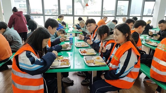 參觀結(jié)束后,師生們還來到企業(yè)食堂就餐,體驗就餐環(huán)境和就餐條件。