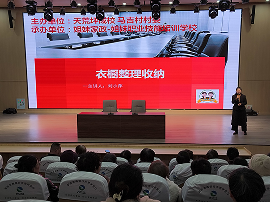 本次活動由安吉姐妹家政資深整理收納師劉小萍老師受邀主講,她幽默風趣地向?qū)W員們介紹了收納整理的意義和斷舍離的標準,并從整理收納認知、3招快速打造有序衣櫥、行李箱整理妙招、基礎衣物折疊技巧四個部分,通過現(xiàn)場測試、案例展示、實操示范等方式,介紹了專業(yè)收納整理的好處以及如何運用衣櫥整理的方法。學員們也來到臺前親自體驗了衣物的折疊擺放,并結(jié)合日常生活中經(jīng)常遇到的問題與老師進行了交流互動。