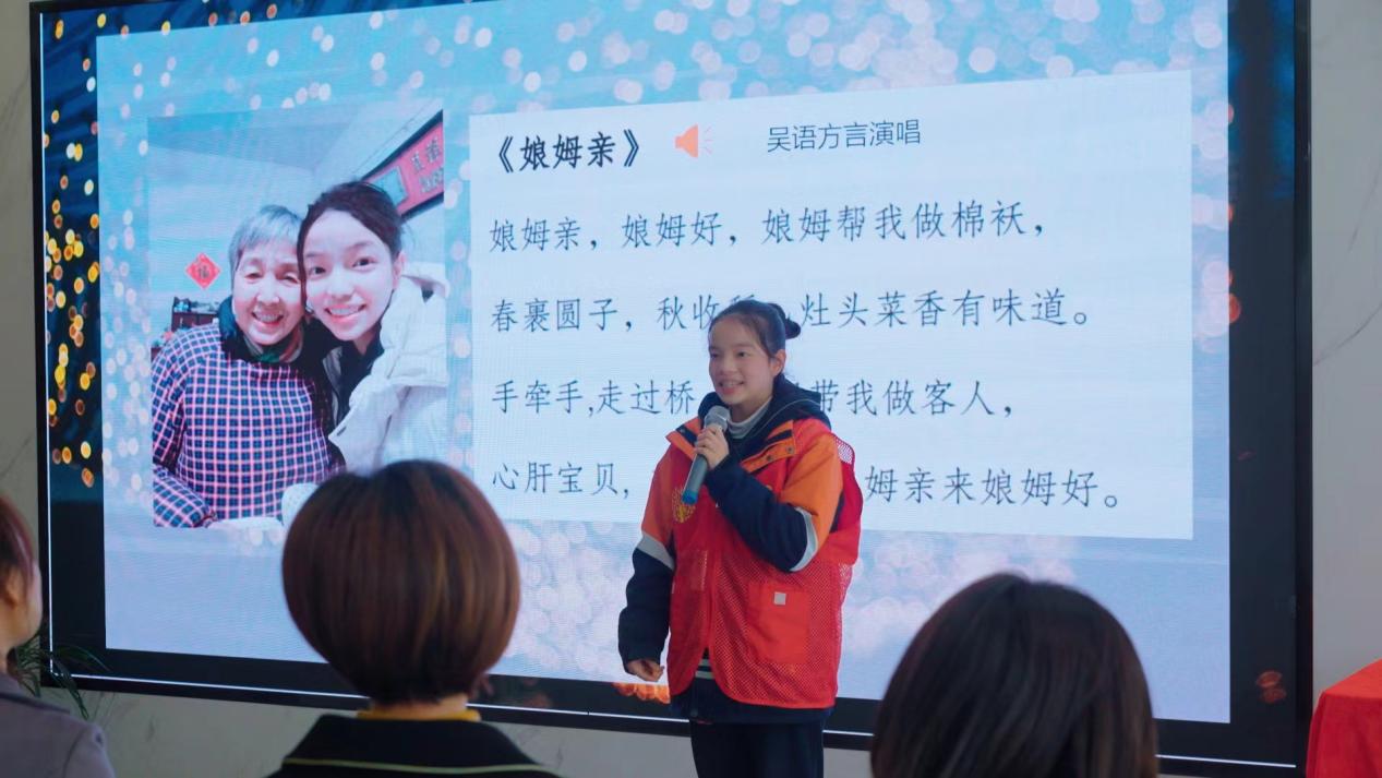 志愿者們心靈手巧、妙筆生花,用扭扭棒制作各式花朵,用畫筆在風(fēng)鈴上繪出各種圖案,這些精美的手工作品受到了社區(qū)居民的強(qiáng)烈喜愛,紛紛駐足挑選。此外,在活動(dòng)的簽約儀式上,2204班的學(xué)生用湖州話為在場(chǎng)的社區(qū)居民演唱《娘母親》,現(xiàn)場(chǎng)氛圍熱烈高漲。