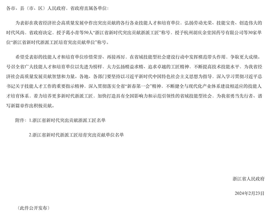 《決定》提出,希望受表彰的技能人才和培育單位珍惜榮譽(yù)、再接再厲,在省域技能型社會建設(shè)行動中發(fā)揮模范帶頭作用,爭取更大成績。