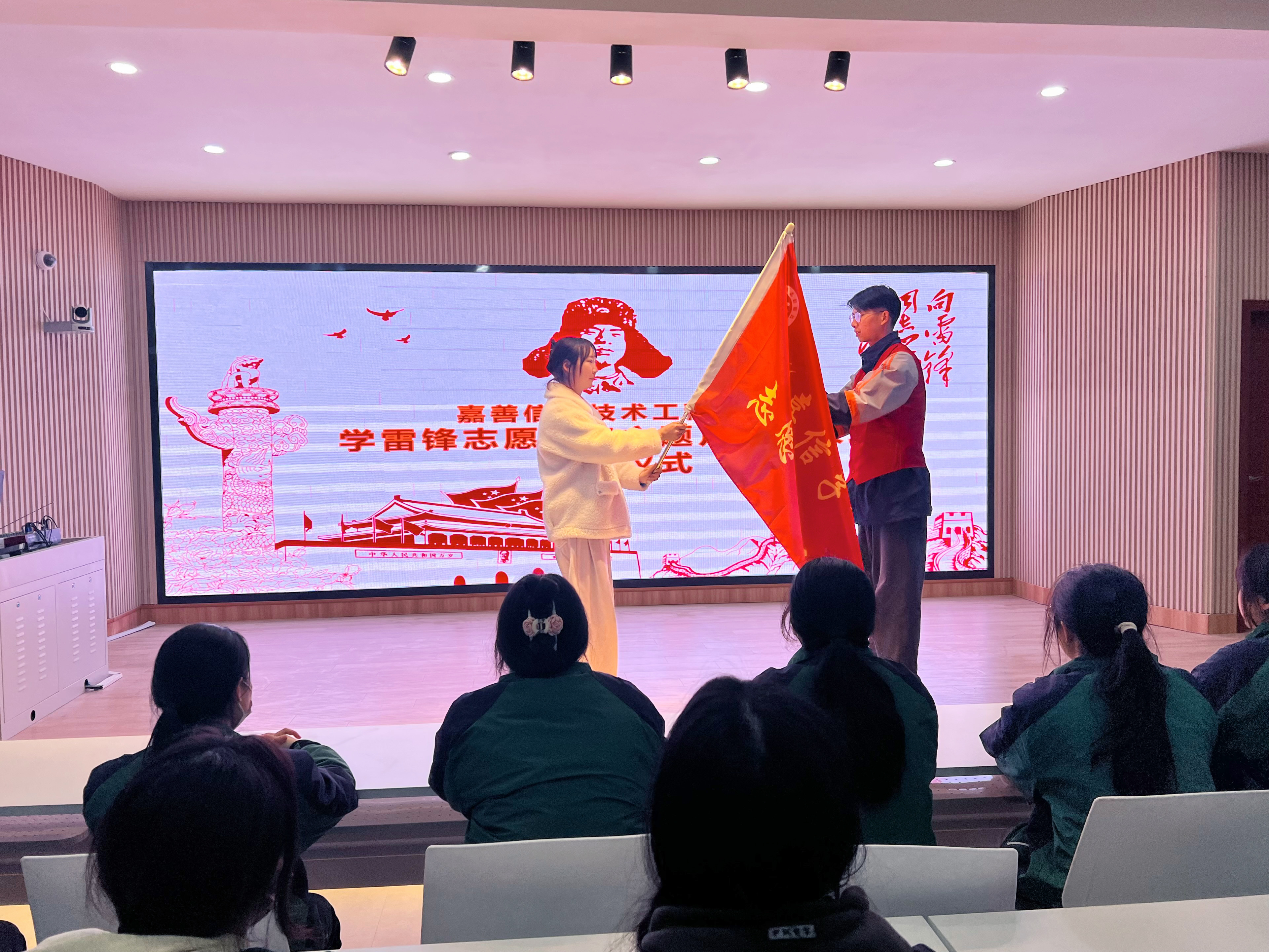 啟動(dòng)儀式上,2207班吳宇森作為“嘉信子”志愿服務(wù)隊(duì)隊(duì)長(zhǎng)從顧婧手中鄭重接過(guò)“嘉信子”志愿服務(wù)旗幟,這面旗幟不僅象征著一種使命與責(zé)任,更代表著全校師生對(duì)“嘉信子”志愿服務(wù)隊(duì)的高度信任和殷切期望。他表示,“嘉信子”志愿服務(wù)隊(duì)將以雷鋒為榜樣,積極開展下社區(qū)文明實(shí)踐、學(xué)習(xí)好人事跡、義務(wù)植樹等志愿服務(wù)活動(dòng)。“嘉信子”志愿服務(wù)隊(duì)將不負(fù)重托,用實(shí)際行動(dòng)踐行雷鋒精神,助力校園文明建設(shè),傳遞社會(huì)正能量。(嘉善信息技術(shù)工程學(xué)校)