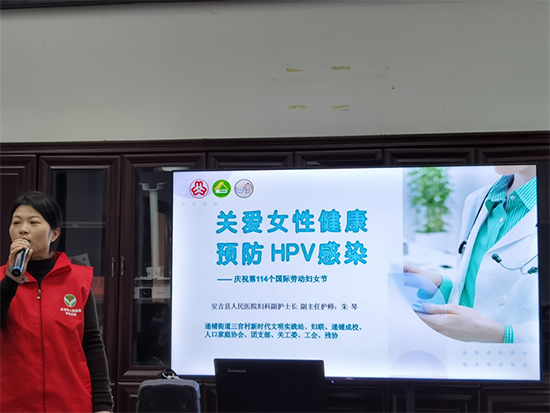 3月6日,安吉縣社區(qū)教育學(xué)院遞鋪分院組織HPV預(yù)防講座下鄉(xiāng),分別送教到鶴鹿溪村和三官村,來(lái)自兩個(gè)村的40余名婦女代表們參加了本次活動(dòng),邀請(qǐng)了安吉縣人民醫(yī)院的護(hù)士長(zhǎng)朱琴授課。