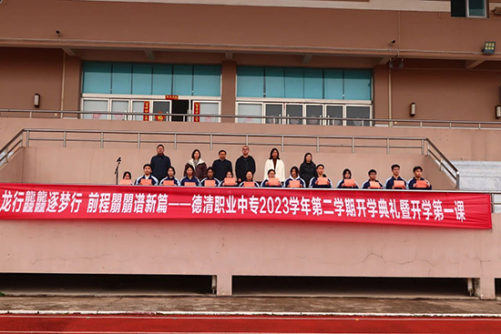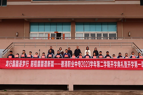 春?jiǎn)⑿鲁蹋?mèng)同行。在元?dú)鉂M(mǎn)滿(mǎn)的新學(xué)期里,德清職業(yè)中專(zhuān)人將繼續(xù)發(fā)揚(yáng)“精誠(chéng)勤”的鑄劍精神,攜手共進(jìn),共同書(shū)寫(xiě)學(xué)校發(fā)展新篇章!(呂海燕/文 陳佳康/圖)