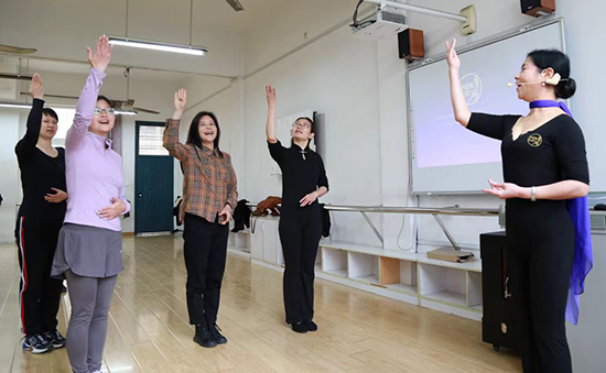 本次活動共有40余位女教師參加,在程老師的帶領和指導下,她們專心投入課程,盡情放松身心,展示出了女性溫婉、優雅、大方的儀態儀表。