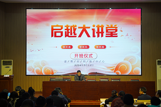 3月15日下午,諸暨市職業(yè)教育中心全體教師齊聚學(xué)校多功能廳,共同迎接學(xué)校本學(xué)期“啟越大講堂”的開講。近年來,以“師德師風(fēng)”為抓手,以“啟越大講堂”為載體,以促進教師專業(yè)化發(fā)展為最終目標,積極認真地開展校本培訓(xùn)。