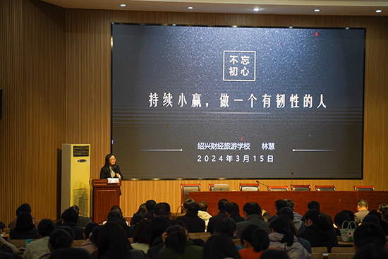 在“啟越大講堂”第一講中,有幸邀請到了紹興財經(jīng)旅游學(xué)校教學(xué)副校長、正高級講師林慧,林慧老師教學(xué)業(yè)務(wù)強,專業(yè)技能精,教研水平高,帶領(lǐng)團隊優(yōu),指導(dǎo)學(xué)生好,奉行“育花人”的教育格言,曾獲省教壇新秀、省黃炎培杰出教師獎、省中職名師及名師工作室等多項榮譽和業(yè)績。此次,林慧老師為大家?guī)怼冻掷m(xù)小贏,做一個有韌性的人》的講座。講座內(nèi)容從“我的履歷、我的成長、我的感恩、我的建議”四個方面展開,從自身經(jīng)歷入手,分享了她成長路上的點點滴滴,“堅持,不停地爬坡”,最終讓她在行政和教學(xué)兩方面都取得了可喜的成績。她的講座案例生動,語言平實,娓娓道來,引起了老師們的共鳴,獲得了大家的認同。學(xué)校領(lǐng)導(dǎo)在總結(jié)中也鼓勵大家在踏實奮斗中不忘初心,超越自我,在日常瑣碎中享受教學(xué)的充實和育人的快樂。