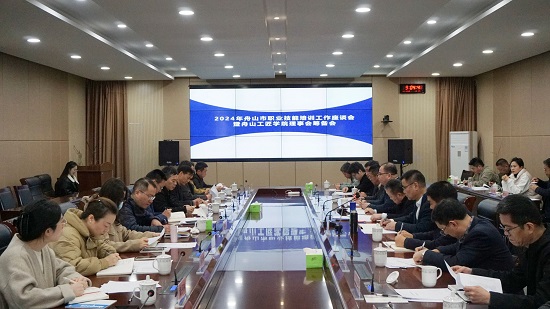 為積極推進(jìn)舟山市職業(yè)技能培訓(xùn)工作,加快技能型社會(huì)建設(shè),3月15日上午,2024年舟山市職業(yè)技能培訓(xùn)工作座談會(huì)暨舟山工匠學(xué)院理事會(huì)籌備會(huì)在舟山技師學(xué)院順利召開。舟山市人社局職建處處長(zhǎng)王虎,市評(píng)價(jià)中心主任曹建榮,舟山技師學(xué)院黨委書記方軍、院長(zhǎng)許猛,等出席會(huì)議。參加本次會(huì)議的還有來自定海、普陀、岱山、嵊泗人社局、普朱功能區(qū)社發(fā)局、成校等相關(guān)領(lǐng)導(dǎo)、工匠代表和工匠學(xué)院籌備組同志近40人,會(huì)議由舟山技師學(xué)院副院長(zhǎng)韓擁軍主持。