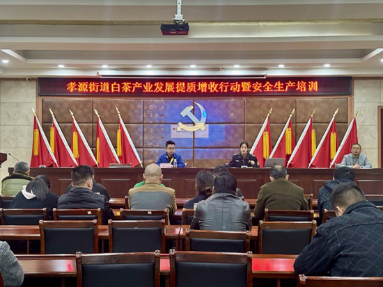 3月13日上午9時,安吉縣孝源街道白茶產業發展提質增收行動暨安全生產培訓班在孝源街道辦事處開班。該培訓由安吉縣社區教育學院孝源學習中心和孝源街道農業農村辦、總工會、婦聯、殘聯、社會事務辦、生態辦、綜合執法所、科協、紅十字會等部門聯合舉辦。