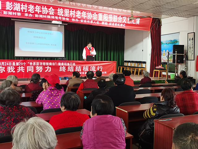 2024年3月24日是第29個“世界防治結核病日”。3月20日下午,安吉社區教育學院報福學習中心在彭湖村攝湖文化禮堂開展結核病預防專題講座。培訓邀請安吉縣第三人民醫院呼吸科副主任醫師周東霞主講,彭湖村52名村民參加培訓。