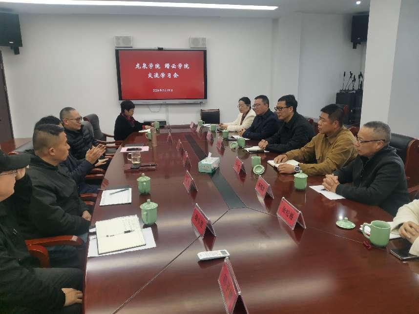 在縉云學院座談會上,縉云學院書記劉勇武、院長謝國光、副院長陳洪亮及相關科室負責人參加座談交流。院長謝國光介紹了縉云開放教育學院的發展歷程、辦學特色、教育教學、招生宣傳等工作,雙方圍繞工作中的困難、教學管理、黨建工作、體系辦學評估等方面進行了深入交流。