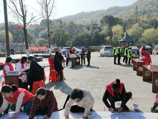 最令人期待的當(dāng)屬“感恩有你”百米畫卷繪制環(huán)節(jié)。在活動現(xiàn)場,一幅百米長的畫卷緩緩展開,村民和志愿者們紛紛拿起畫筆,在畫卷上繪制著各種祝福語和圖案。他們用自己的雙手,將對當(dāng)前生活的感激之情化作五彩斑斕的畫卷,表達對志愿者、對鄣吳鎮(zhèn)無私奉獻的美好祝愿。