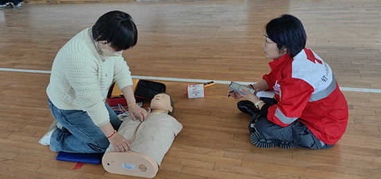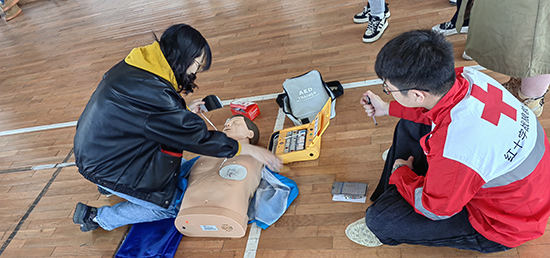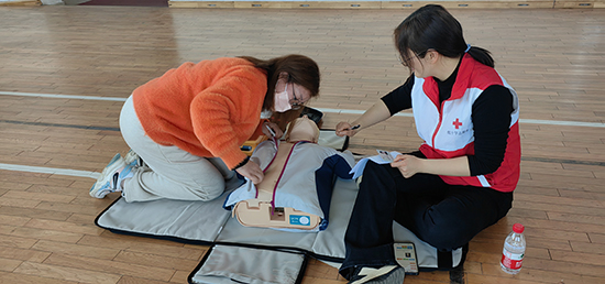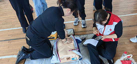 在實操環(huán)節(jié),紅十字會工作人員向培訓班學員發(fā)放了急救包、應急救護知識手冊以及一次性呼吸膜、三角巾、繃帶等急救練習工具,王醫(yī)生對心肺復蘇、創(chuàng)傷救護和骨折固定、搬運等急救知識進行了“手把手”的現(xiàn)場實操練習。