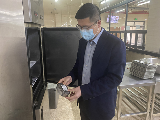 會后,膳管會一行來到食堂進行實地檢查。在仔細查核過食堂員工健康證后,成員們統一佩戴口罩進入食堂內各場所,按照流程開展認真、仔細地檢查工作。從食品倉庫,到操作間、烹飪間,再到配菜間,他們主要查看了主食(米、面、油)調料的存放、規范使用等情況,檢查了食品加工色標管理的執行情況,了解餐具消毒以及食品留樣等相關工作,并對照《富陽區教育系統學校食品安全工作自查表》,逐一提出相應改進意見。