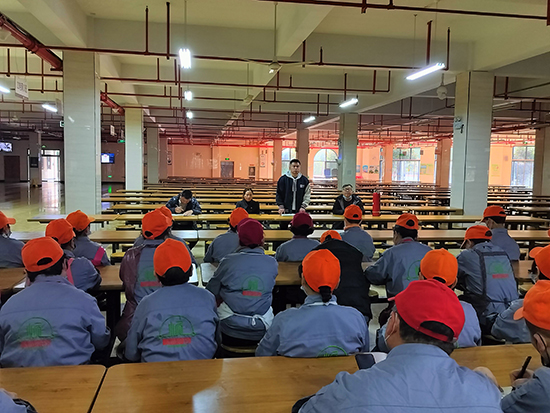 會上,孫捷著重圍繞“常規(guī)”“細(xì)節(jié)”兩個關(guān)鍵詞,要求全體食堂員工在做好食堂食品衛(wèi)生及消防安全常規(guī)工作的同時,更加注重工作中的細(xì)節(jié)。食堂安全關(guān)系到全體師生的安全,也關(guān)系到整個學(xué)校的安全,希望大家在常規(guī)工作中將安全落實到各個分步細(xì)節(jié)上,規(guī)范操作,配合做好晨檢,戴好帽子、口罩,嚴(yán)格按要求穿著操作間服裝,保護(hù)自己,保障食品安全,將食堂衛(wèi)生安全工作做得更好。俞麗衛(wèi)用身邊的例子強(qiáng)調(diào)消防安全工作的重要性,希望全體員工都能掌握基本的消防安全知識技能,積極配合學(xué)校消防安全工作的開展。他還現(xiàn)場對全體食堂員工講解各個崗位消防安全知識,并對滅火器的操作要領(lǐng)做詳細(xì)正確的示范。