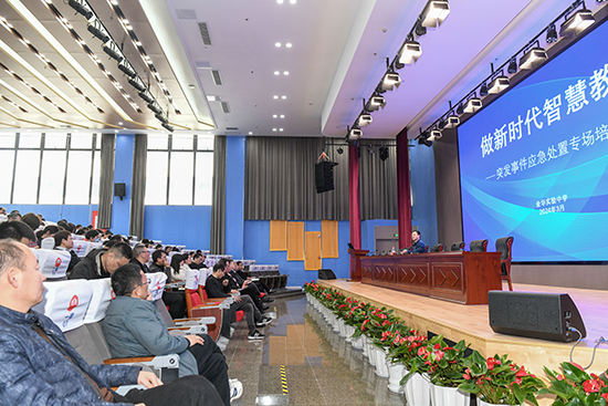 毛曉波的講座內容豐富,從春季學生心理特點入手,用典型的案例分析,深入淺出地講述“突發(fā)事件的定義與分類”“突發(fā)事件應急管理”以及“突發(fā)事件應急處置與輿情應對”等內容,并結合學校實際,強調校園突發(fā)事件應該以防范為主,要完善各項管理制度及應急預案。通過培訓有效地強化了金華實驗中學教職工的安全意識,提升了學校的應急處置能力。