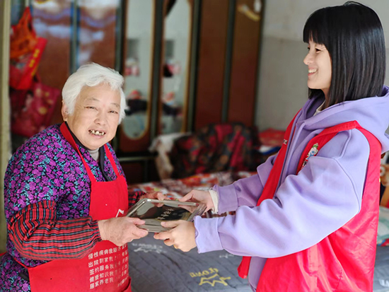 志愿者老師輾轉(zhuǎn)又來到沈明珠奶奶家,沈奶奶早已站在大門口迎接,她很是高興:“感謝你們了,大老遠地給我送飯來,現(xiàn)在天天都能準時吃上飯,特別感謝政府的關(guān)心和用心。”