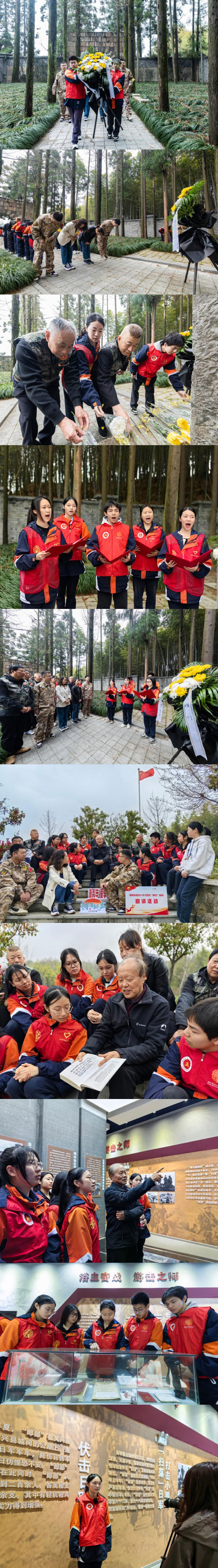 活動(dòng)過程中,學(xué)前教育專業(yè)部的學(xué)生與朝陽街道黨員、民兵代表,退伍老兵一起向烈士陵墓敬獻(xiàn)花圈、默哀,學(xué)生代表朗誦英雄事跡,向烈士致以崇高的敬意。朝陽街道退伍老兵為學(xué)生講述了抗日故事。浙江省首批優(yōu)秀民間文藝人才沈鑫元先生,分享了他撰寫《湖州“郎部”抗日英雄傳》的初衷,介紹了紀(jì)念館的歷史背景和展品的詳細(xì)含義。