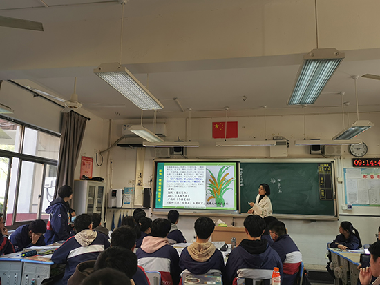 語文學科王佳飛和虞婕老師分別通過讓學生繪制繪本和歷程圖的方式把水稻生長的過程和青蒿素研究的歷程生動形象地展示了出來,使得課文的學習變得簡單易懂、條理清晰,她們還通過人物聯讀的方式弘揚了袁隆平、羅陽等科學家“愛崗敬業、爭創一流,艱苦奮斗、勇于創新,淡泊名利、甘于奉獻”的勞模精神。尤其是王佳飛老師在課堂的最后還設計了作者宋應星與當代糧食之父袁隆平的跨越三千年的握手環節,給人非常震撼的效果。