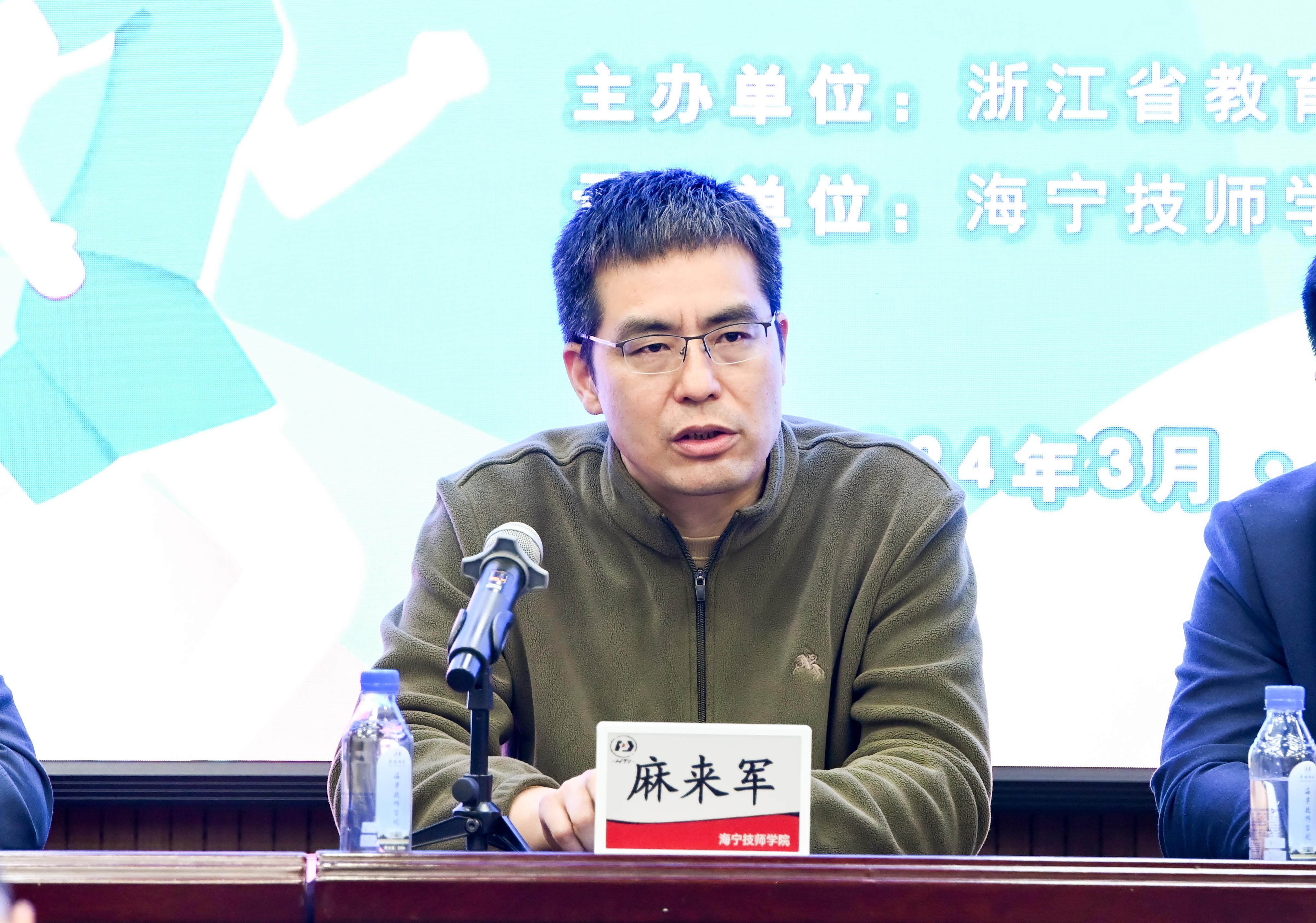 海寧技師學院黨委書記、院長陳海鋒介紹了學校辦學理念及學校體育工作。陳院長表示,此次活動是對學院體育工作的肯定和鼓勵,也是對今后工作的鞭策。學院將以承辦本次活動為契機,虛心接受各位專家和同仁的寶貴建議,進一步加強學校體育工作,厚植高技能人才成長沃土,為人才隊伍建設貢獻海技力量。