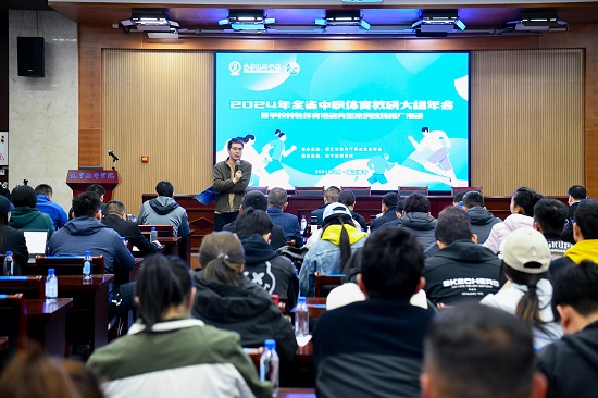 杭州市建設職業學校於一副校長進行了題為《小圓球擲出“大”精彩——地拋球運動項目進校園的實踐》的主題研討。通過地拋球運動項目,豐富體育課形式,讓體育活動不受體育場地的限制。