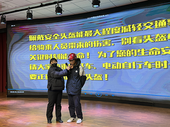 活動中,交通安全宣教人員播放了本縣典型事故案例視頻,詳細分析案例細節,講述電瓶車騎行時應當注意的問題,教導學生如何避險,引導學生提高交通安全風險意識。