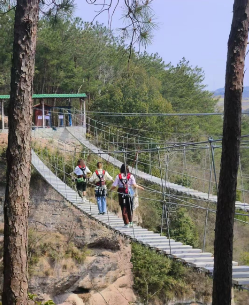 上午7時30分,老師們從學校出發,在一路歡聲笑語中前往新昌穿巖十九峰。青翠欲滴的草坪、郁郁蔥蔥的茶園、層巒疊翠的山峰、隱約可見的山腰棧道,沿山體蜿蜒曲折的999級臺階,驚險刺激的空中玻璃棧道和晃晃悠悠的飛龍天橋,處處美景無不讓老師們流連忘返。老師們走走停停,拍拍宜人的自然風光,一路歡歌笑語,放松心情,相互傾訴工作的困惑、談談子女的教育或聊聊未來人生的規劃。老師們熱情擁抱自然,放飛身心,盡享生態之美。