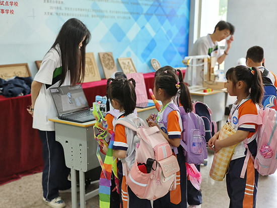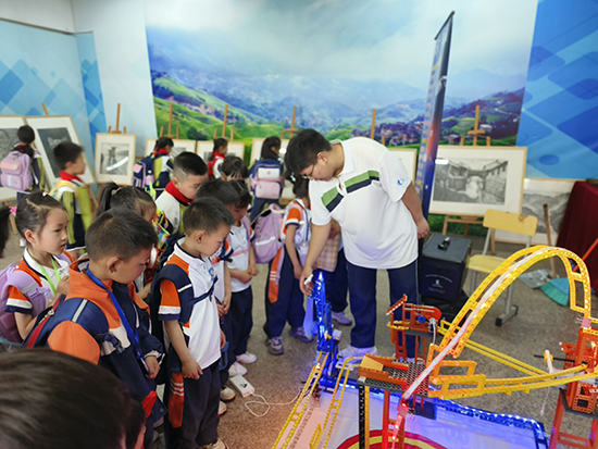 “小可愛(ài)”們首先來(lái)到學(xué)校的實(shí)訓(xùn)樓參觀,用探究的眼光觀察著實(shí)訓(xùn)室里的各種專業(yè)設(shè)備。為了迎接他們的到來(lái),學(xué)校的創(chuàng)客小達(dá)人們還展出了自己的創(chuàng)意作品。看到“超能小球”、智能機(jī)器人等科技感滿滿的作品,小朋友們一下子化身為“好奇寶寶”,他們饒有興致地簇?fù)磉^(guò)來(lái),津津有味地聽(tīng)著大哥哥、大姐姐的講解,近距離地體驗(yàn)到了科技創(chuàng)意的魅力。