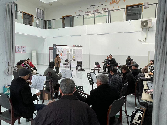 活動開始后,大家先從吸氣、呼氣等基本功,再到練習發音,最后,大家唱的唱、器樂演奏的器樂演奏,一起練習越劇《碧玉簪·送鳳冠》。整個活動秩序井然,氣氛活躍。老年戲曲愛好者們紛紛表示,這樣的活動非常有必要,讓老年人聚在一起老有所學、老有所樂,精神生活更加豐富多彩。