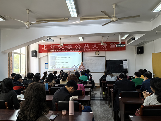 4月10日下午,諸暨市老年大學(xué)邀請(qǐng)諸暨市關(guān)工委幫扶團(tuán)副團(tuán)長(zhǎng)蔡美為老年學(xué)員舉行“預(yù)防校園欺凌”講座,近百人聽課。