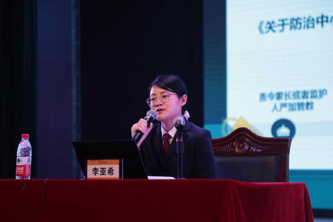 李檢查官結(jié)合具體案例,就校園欺凌行為的種類、法律責(zé)任與防治措施以及“幫信罪”、“詐騙罪”等三類犯罪行為的預(yù)防進(jìn)行了詳細(xì)的解讀。李檢查官還勉勵(lì)同學(xué)們要增強(qiáng)法治意識(shí),保持樂觀心態(tài),提升鈍感力,涵養(yǎng)大胸懷。
