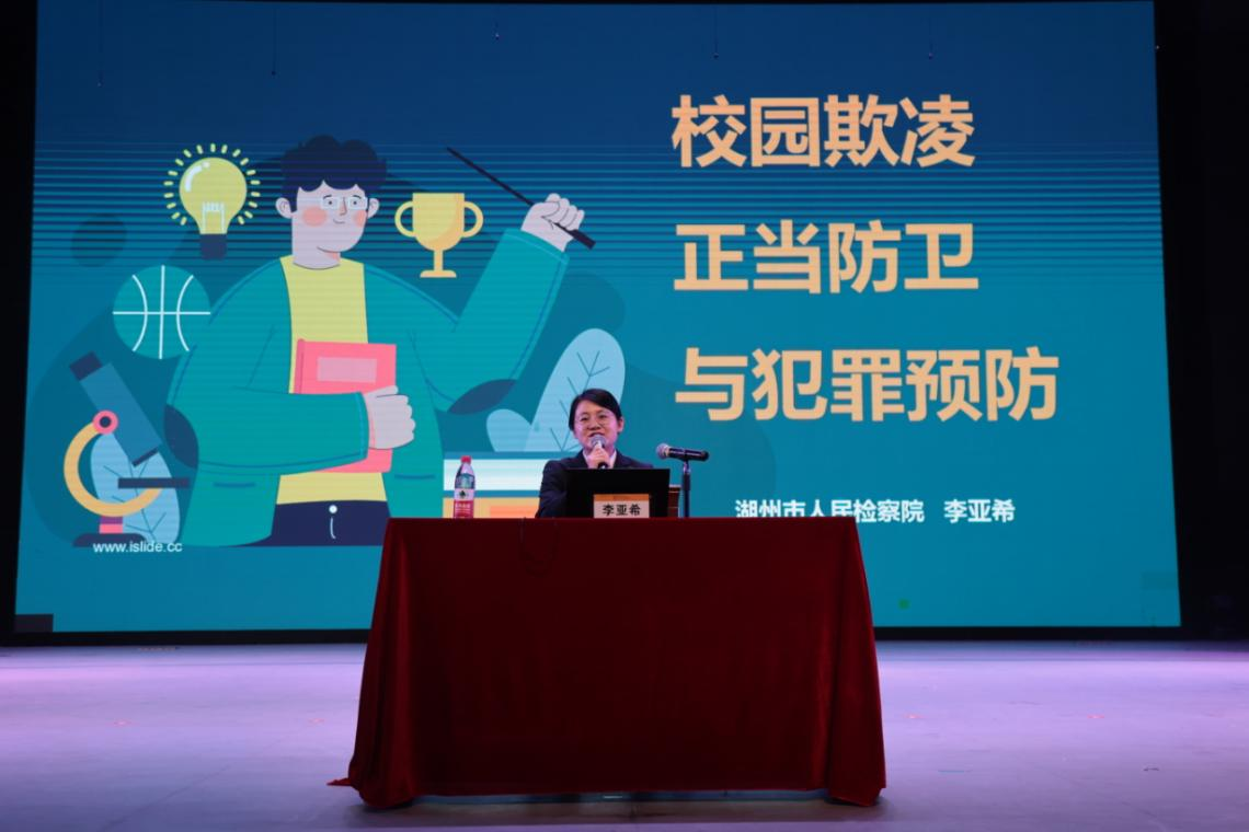 為加強(qiáng)學(xué)生對(duì)欺凌行為的認(rèn)識(shí),提高學(xué)生的自我保護(hù)意識(shí),營造和諧、安全的校園環(huán)境,4月12日下午,浙江省湖州藝術(shù)與設(shè)計(jì)學(xué)校邀請(qǐng)湖州市人民檢察院第六檢查部檢查官李亞希到校,為全體同學(xué)作了題為《校園欺凌、正當(dāng)防衛(wèi)與犯罪預(yù)防》的專題講座。