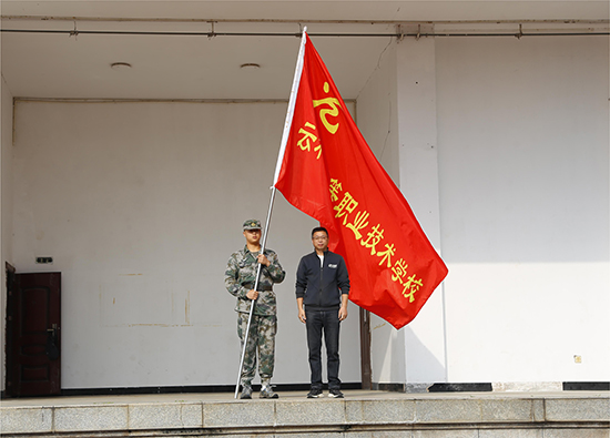 校黨總支書記、校長(zhǎng)陳偉華為本次拉練授旗。
