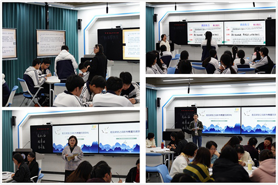 公開課結(jié)束后,馬上進(jìn)入說(shuō)課評(píng)課環(huán)節(jié)。兩位開課教師闡述了自己的設(shè)計(jì)理念及上課過(guò)程的得失。隨后,聽課教師針對(duì)聽課內(nèi)容發(fā)表自己的看法,圍繞高三作文復(fù)習(xí)頭腦風(fēng)暴,各抒己見。有老師指出,今天的兩堂作文課,從審題到內(nèi)容,從筑基到造高樓,正好形成作文教學(xué)的一個(gè)閉環(huán);有老師認(rèn)為,付老師的課在學(xué)生原有基礎(chǔ)上進(jìn)行提高,沈老師的課注重學(xué)生思維的培訓(xùn),兩位老師都提供了可操作的作文教學(xué)的流程,可以直接借鑒使用。最后徐立瑾老師總結(jié)發(fā)言,徐老師高度肯定了兩位老師的課,精心準(zhǔn)備,有思路、有方法、有突破、有成效,也指出還需要重視培養(yǎng)學(xué)生在作文教學(xué)活動(dòng)中,所應(yīng)表現(xiàn)出的語(yǔ)文素養(yǎng)、精神品質(zhì)和綜合能力。