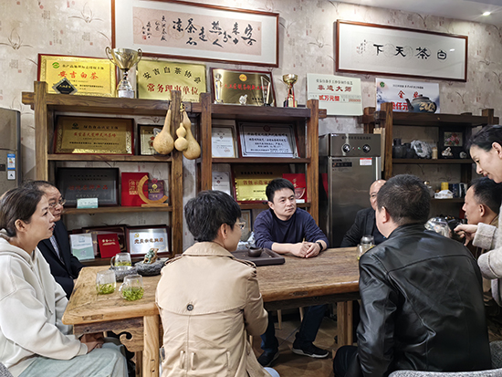 調研過程中,負責人詳細介紹了該公司的成長歷史、發展歷程、資產狀況、生產工藝、運作流程、企業前景等具體情況,并帶領參觀了生產車間,實地考察了位于“白菜祖”附件的茶山,現場觀摩了采茶工采茶。(潘育飛)