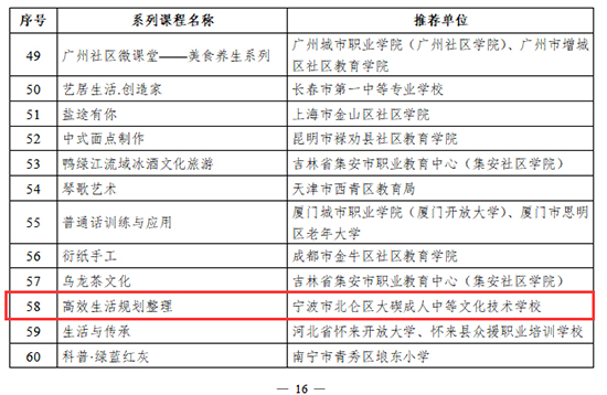 日前,教育部職業教育與成人教育司公布了2023年縣域品牌社區學習中心典型案例和品牌課程推介名單。寧波市北侖區大碶成人學校推介的《高效生活規劃整理》成功上榜國家級社區教育品牌課程!