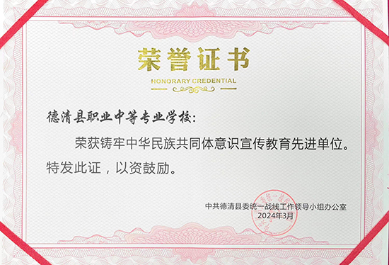 近日,德清職業(yè)中專獲評“鑄牢中華民族共同體意識宣傳教育先進(jìn)單位”。