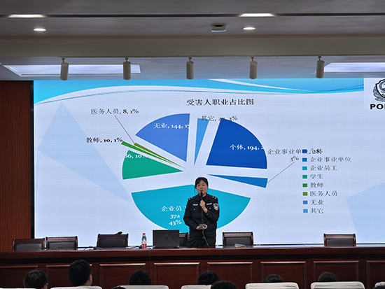 宣講會上,德清縣反詐中心金牌宣講員李小瓏警官通過PPT展示,詳細(xì)介紹了網(wǎng)絡(luò)詐騙種類、易受騙群體以及作案手法等內(nèi)容。通過典型案例分享,重點為同學(xué)們講解了刷單返利詐騙、網(wǎng)絡(luò)交易詐騙、冒充熟人詐騙、網(wǎng)絡(luò)游戲虛假交易詐騙、殺豬盤詐騙等騙術(shù)騙局;還通過播放反詐宣傳視頻及現(xiàn)場問答與同學(xué)們面對面互動交流,提醒同學(xué)們在日常生活中注意保護(hù)個人身份信息,要及時下載安裝國家反詐中心APP,牢記國家反詐專線96110和湖州市防詐熱線2250000,若被騙及時撥打110報警。