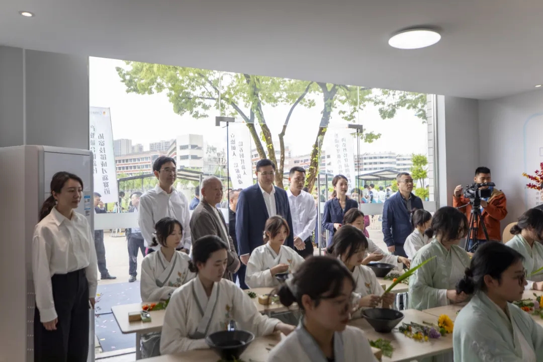 葉智勇副校長致歡迎辭。他希望,婺窯館和花藝館能夠打造成弘揚和傳承優秀傳統文化、熏陶和培養學生人文素養的有效載體,成為展示學校師生文明風貌、助力學生全面發展的重要實踐平臺。葉副校長強調,學校將持續關心、關注兩館的發展,相關部門和老師要充分利用好這個平臺,有效開展形式多樣、特色鮮明、靈活創新的教育教學活動,力爭將茶藝生活館打造成學院德育工作的“金名片”,為學校培養更多品學兼優的高技能人才、能工巧匠注入強大活力。