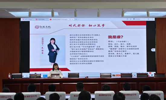 本次活動(dòng)邀請(qǐng)的是23烹飪2班學(xué)生錢奕航的家長(zhǎng)朱國(guó)琴女士——浙江紅圖文化科技有限公司總經(jīng)理、湖州市廣告協(xié)會(huì)副會(huì)長(zhǎng)。會(huì)議由烹飪旅游系辦周建良老師主持,23級(jí)200多名學(xué)生和班主任參加了此次講座。周老師介紹了舉辦家長(zhǎng)導(dǎo)師進(jìn)校園的意義,讓學(xué)生近距離聆聽家長(zhǎng)導(dǎo)師的成長(zhǎng)經(jīng)歷,將所學(xué)所得轉(zhuǎn)化為成長(zhǎng)的動(dòng)力,隨后,向朱經(jīng)理頒發(fā)了學(xué)校的聘書。