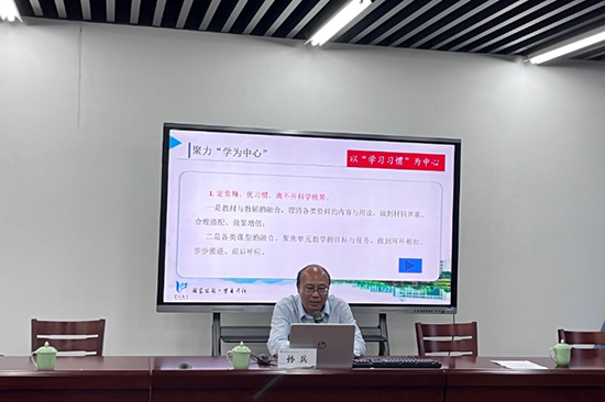 講座中,孫老師聚焦三條路徑,路徑一是“學為中心”。結合當下學生面臨的學習問題,指出學的內涵以及怎樣落實“學為中心”。通過定一份學習常規(guī),確保學生有序學習;擬一張任務清單,促進學生有效學習;建一套考評機制,激勵學生有勁學習的方式,落實“學為中心”。孫老師還引用葉圣陶先生“要養(yǎng)成學生閱讀書籍的習慣,就非教他們預習不可”的名言,著重強調了預習的重要性,以此激發(fā)學習潛能。